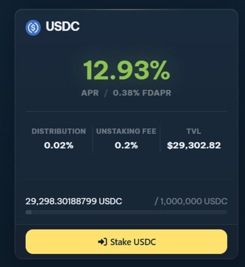 For example, the USDC liquidity pool currently pays about 12%+ annually on provided liquidity. At current rates and turnover, a USD 1,000 USDC liquidity provision would therefore generate roughly USD 10 per month.