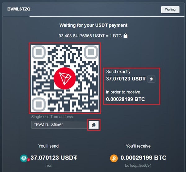 - Step 5: Open the Coinbase exchange (if you store your funds there – though we do not recommend keeping funds on exchanges) or your Coinbase Wallet. Scan the QR code or copy and paste the provided deposit address. Then, transfer the exact amount shown on the screen.