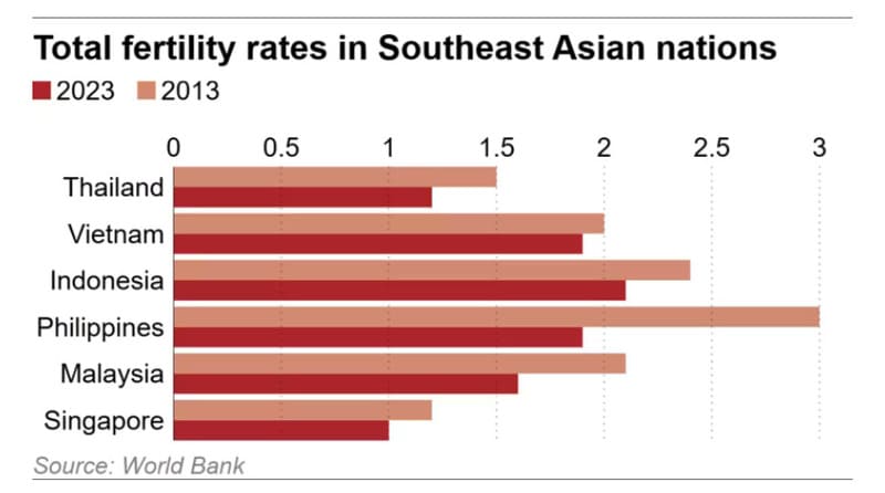 While Vietnam’s birth rate has shown signs of stabilization in recent years – and the country’s leadership is taking proactive steps to encourage earlier family formation – the national fertility rate still remains below the replacement level of approximately 2.1 births per woman.