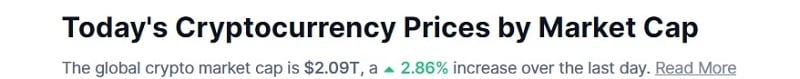 Ví dụ: theo CoinMarketCap, tổng giá trị vốn hóa của thị trường Cryptocurrency là ngày 6/7/2024 là 2,09 triệu triệu USD.