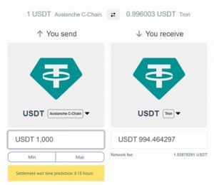 Chính vì lẽ đó, BitcoinVN đã quyết định hỗ trợ chuyển USDT (Tether) qua Mạng Avalanche. Bạn có thể chuyển tiền ngay lập tức và không cần phải đăng ký tài khoản trên sàn.