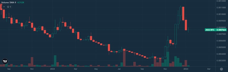 Mùa thu năm 2023, các nhà đầu cơ AVAX đã mở tiệc ăn mừng khi đồng tiền này gần như đạt đến mức cao hàng năm (được đo bằng Bitcoin). Và chỉ trong vài tuần ngắn ngủi, nó đã trở thành “altcoin mạnh nhất” trên thị trường tiền điện tử toàn cầu.
