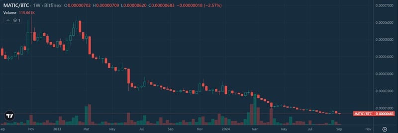 Tuy nhiên, nếu bạn muốn mua POL để lưu trữ dài hạn và chờ tăng giá để chốt lời thì đây không phải là quyết định sáng suốt. Bởi giá token POL có xu hướng giảm so với Bitcoin (BTC) – chuẩn mực của hệ sinh thái tiền điện tử.