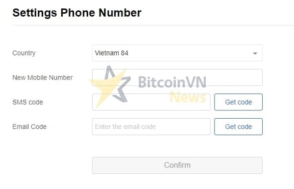 Nhập số điện thoại của bạn vào New Mobile Number và “Get Code”. Đợi một chút, các bạn sẽ nhận được mã trên điện thoại của bạn. nhập vào ô “SMS Code”
