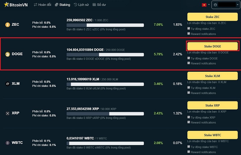 • Mua DOGE và staking trên sàn giao dịch để nhận phần thưởng.