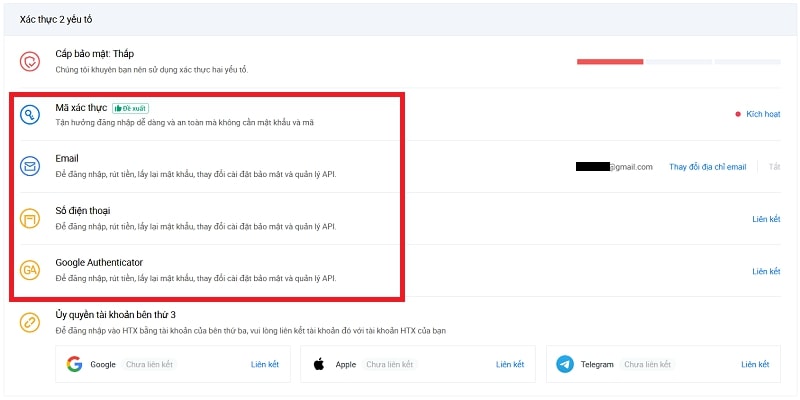 - (Dấu Chấm Than màu đỏ) có nghĩa là tài khoản Huobi của bạn chưa được liên kết và kịch hoạt 2FA.