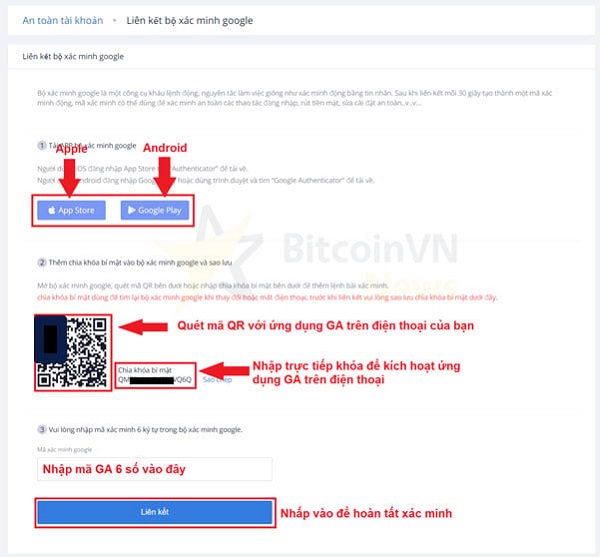- Bước 7: Sau khi hoàn thành thiết lập Google Authenticator, mã GA (gồm 6 số) sẽ được yêu cầu hiển thị và truy cập mỗi khi đăng nhập hoặc có các hoạt động về bảo mật nào. Mã sẽ được thay đổi mỗi 30 giây. Lưu ý là các bạn chỉ được sử dụng mã mới nhất được tạo ra, các mã cũ không còn giá trị.