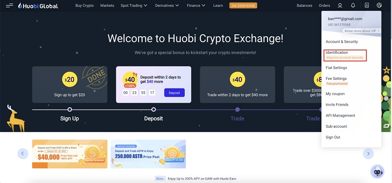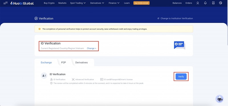 Hướng dẫn xác minh tài khoản trên sàn giao dịch Huobi Global