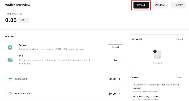 - Bước 2: Chọn “Deposit”