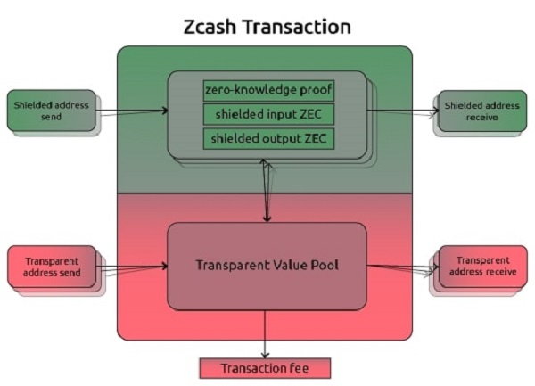 Zcash transactions can occur on two types of addresses: transparent (t-addresses) and shielded (z-addresses).