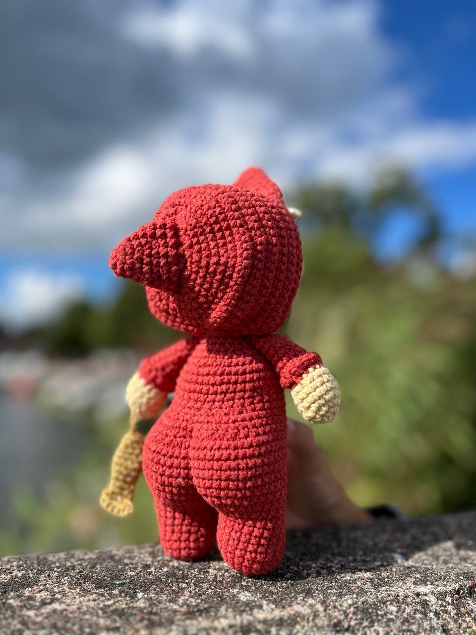 I’m crafted from soft yarn, comprising 60% cotton and 40% acrylic and a lot of love! My mom feeds me with organic cotton picked by hand by our family 🌿