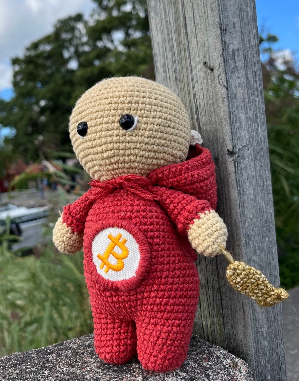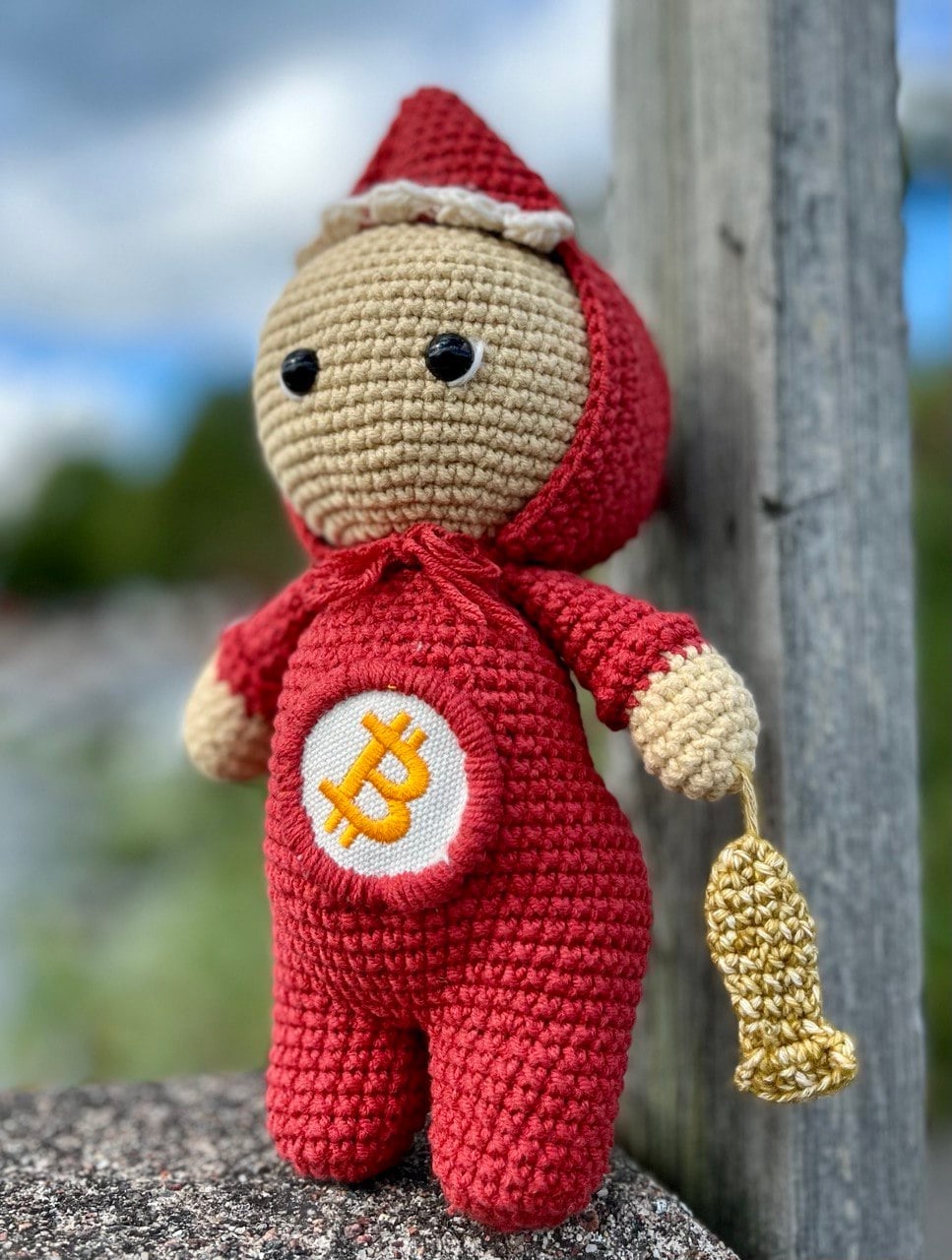 I’m Bitcoin Baby, born in a charming coastal city. Mom crafted a shark outfit for me, perfect for our fishing adventures! But, she lost all her Bitcoin in a boating accident, so now she has to crochet 🧶 for sats to save up again!