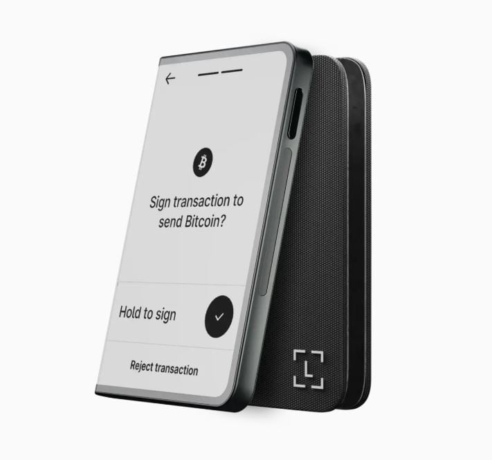 For the first time on a hardware wallet, Ledger Stax™ features a curved E Ink® touchscreen, easy to read in bright light, power-efficient, and capable of clearly displaying all transaction details. Additionally, the wallet supports customized lock screens using NFTs or personal photos, making it both secure and personalized.