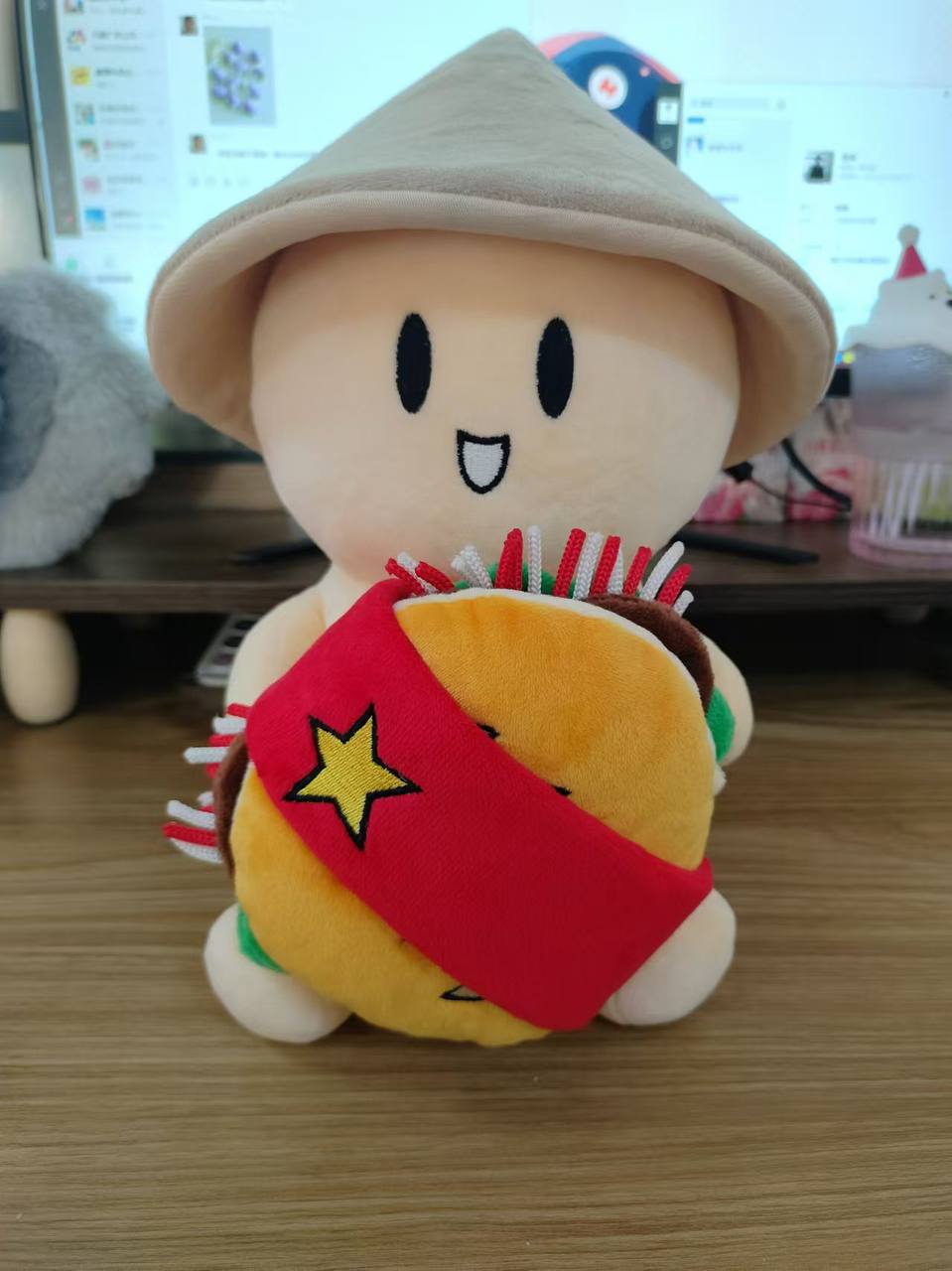 Enjoying a mighty Vietnamese-style Bánh mì and protected from the scorching tropical sun with the traditional Vietnamese nón lá, Little Hodler is ready to embark on his adventures in Vietnam!