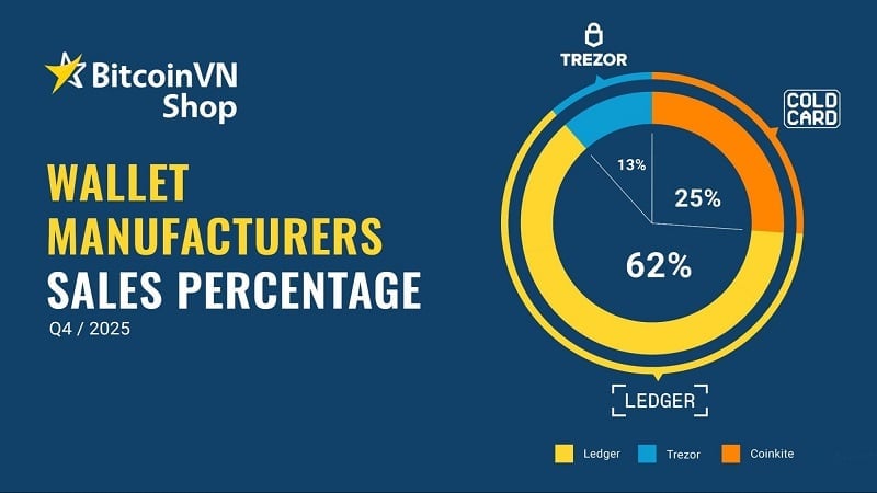 Đây là báo cáo tổng kết doanh thu ví cứng tại thị trường Việt Nam năm 2025 của BitcoinVN Shop. Báo cáo này không chỉ phản ánh kết quả kinh doanh quý 4 mà còn thể hiện xu hướng lựa chọn của người dùng Việt và thị phần của các dòng ví cứng được ưa chuộng nhất tại Việt Nam trong năm qua.