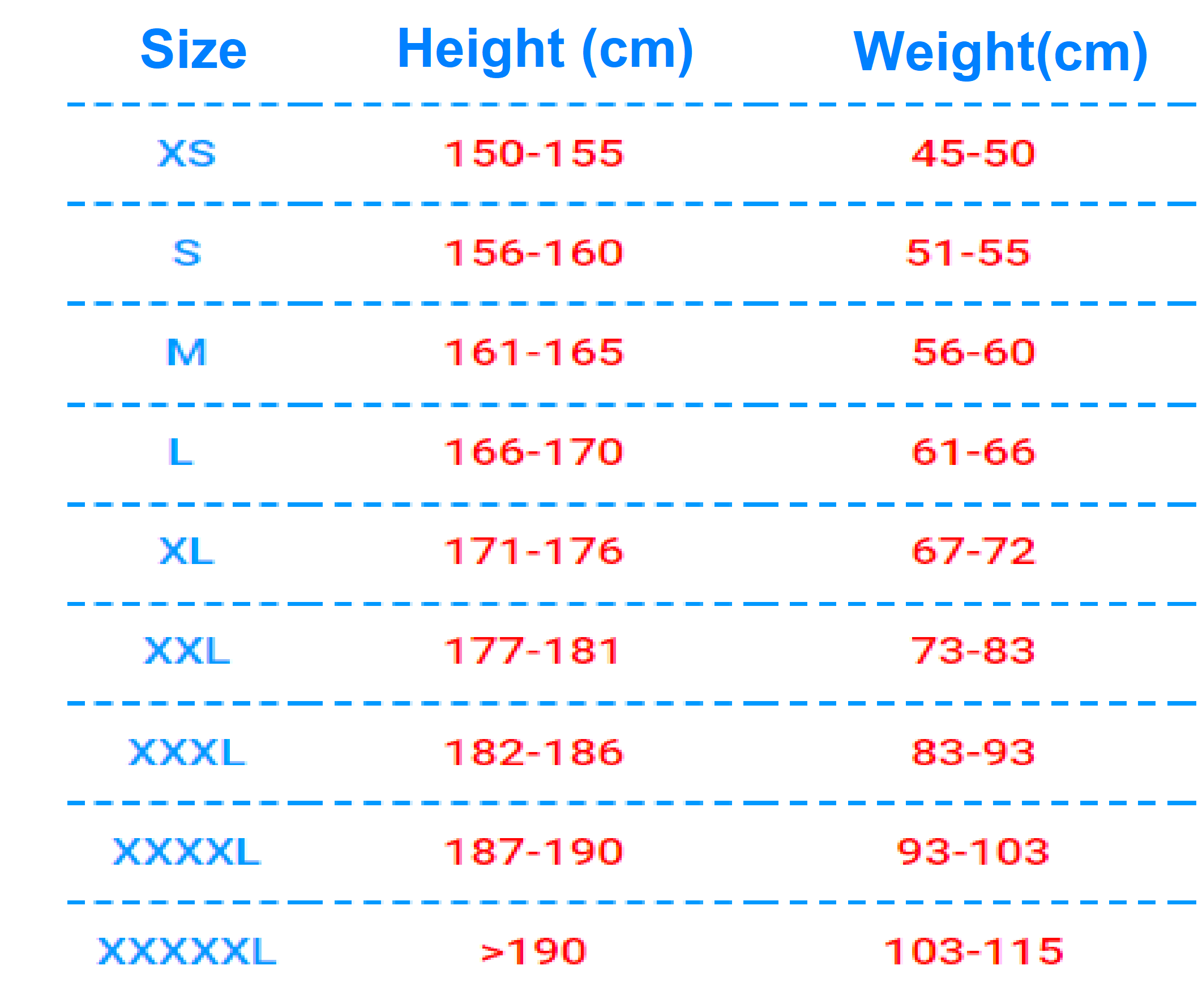 | Size | XS, S, M, L, XL, 2XL, 3XL, 4XL, 5XL |