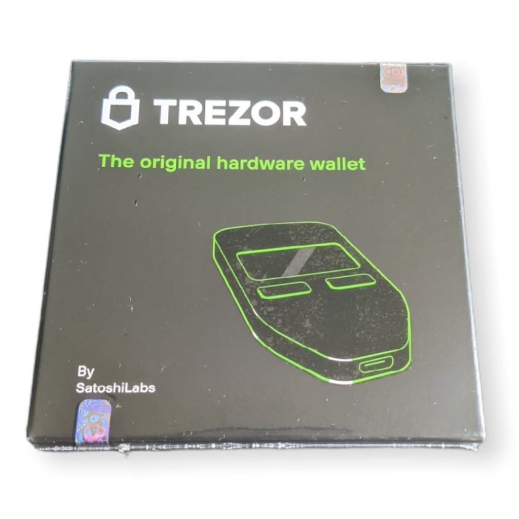 Hộp đựng Trezor Model One được bảo vệ cẩn thận với hai tem bạc ở hai mặt và bọc trong một lớp màng nhựa mỏng. Bao bì được dán chắc chắn bằng keo, đảm bảo không thể mở ra mà không bị xé rách. Bên trong gồm những thứ sau: