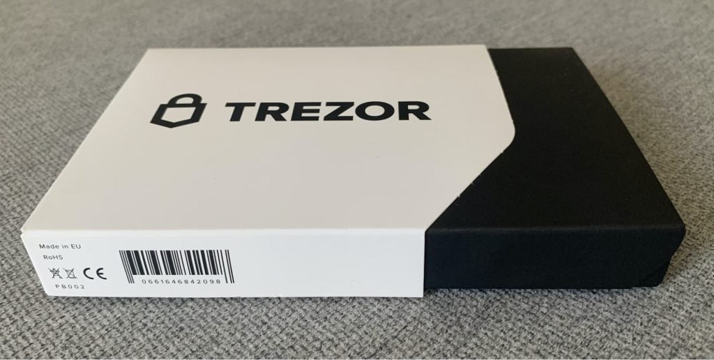 Logo Trezor giờ được in màu đen, nổi bật hơn so với phiên bản trước. Bên cạnh đó, tên sản phẩm cũng được in rõ ràng ở cạnh trên của hộp để dễ dàng nhận dạng.